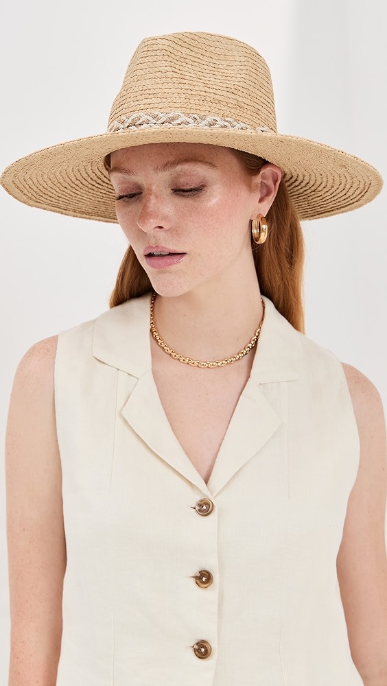 • Braided hat band with metallic threading